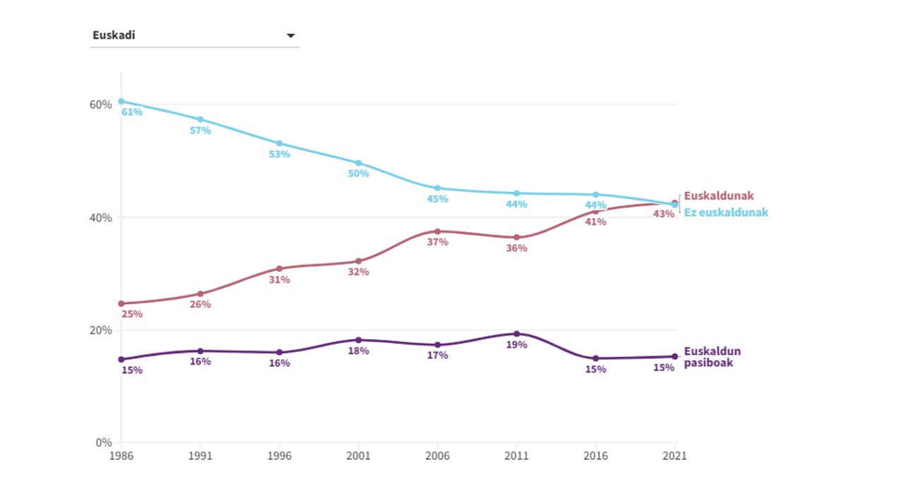 Euskararen Eguna dela eta argitaratu den EiTB Data txostenak bistan utzi du EAEko biztanleen % 45 euskaldunak direla, eta hizkuntza asko hazi dela Araban eta Bizkaian. Hala ere, euskararen eguneroko erabilera ez da oraindik nagusi, batez ere hiriburuetan eta hirigune handietan.