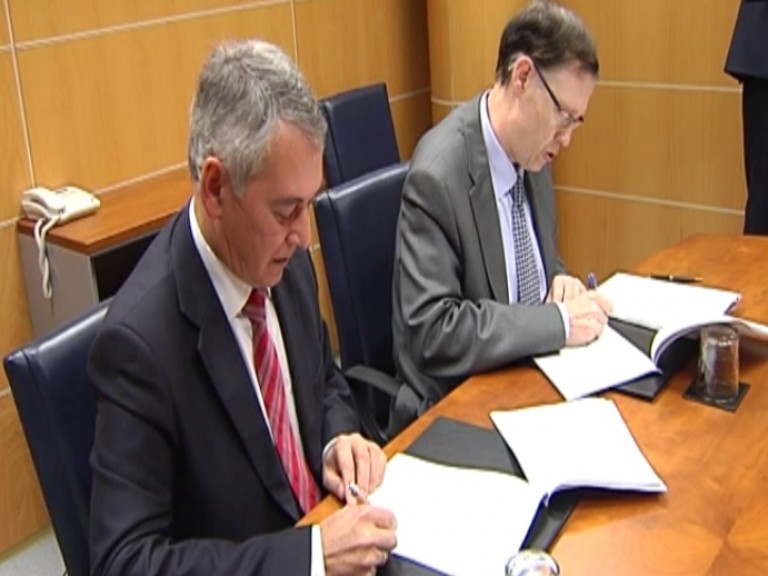 El consejero de Hacienda y Finanzas, Ricardo Gatzagaetxebarria, y el portavoz económico del PP vasco, Antón Damborenea, han suscrito hoy un acuerdo presupuestario que obliga a los populares a no presentar enmienda de totalidad, no apoyar las enmiendas de totalidad de EH Bildu y UPyD ni aquellas enmiendas parciales que "desvirtúen" los números principales, y facilitar con su voto la aprobación del proyecto.