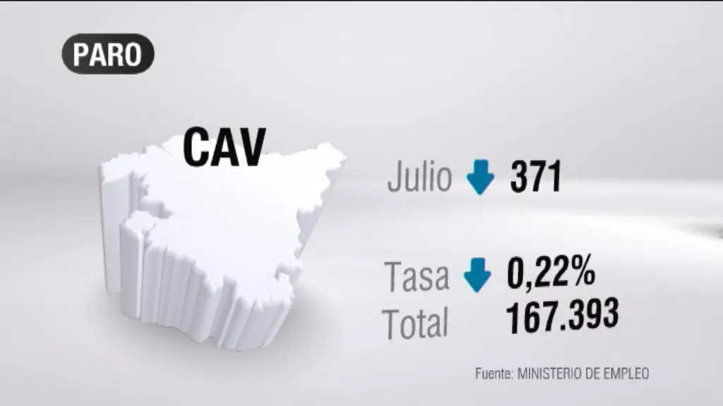 El paro registrado en la CAV ha bajado en julio en 371 personas hasta los 167.393 desempleados, lo que supone un 0,22 % menos que en el mes anterior, según datos difundidos por el Ministerio de Trabajo.