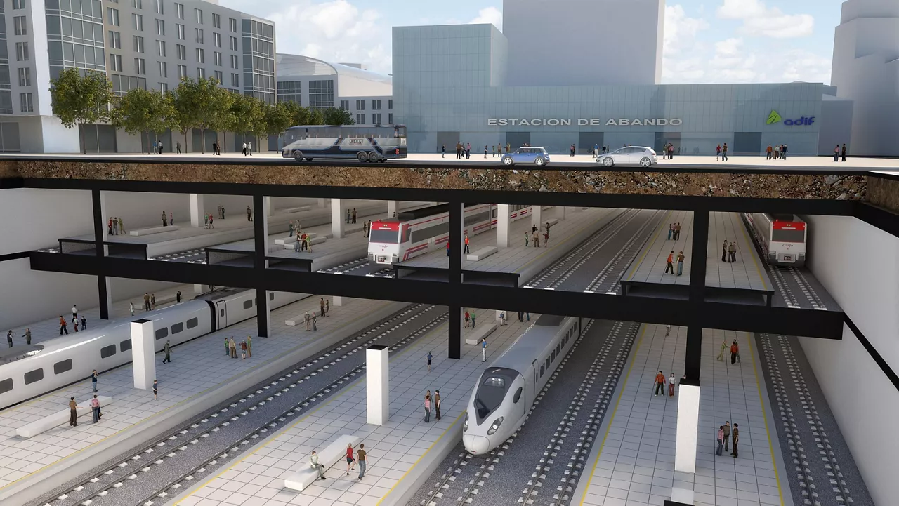 Además, en un único edificio se concentrarán todos los servicios de atención a viajeros, fomentando la intermodalidad e integrando los servicios de Cercanías, FEVE y Alta Velocidad.