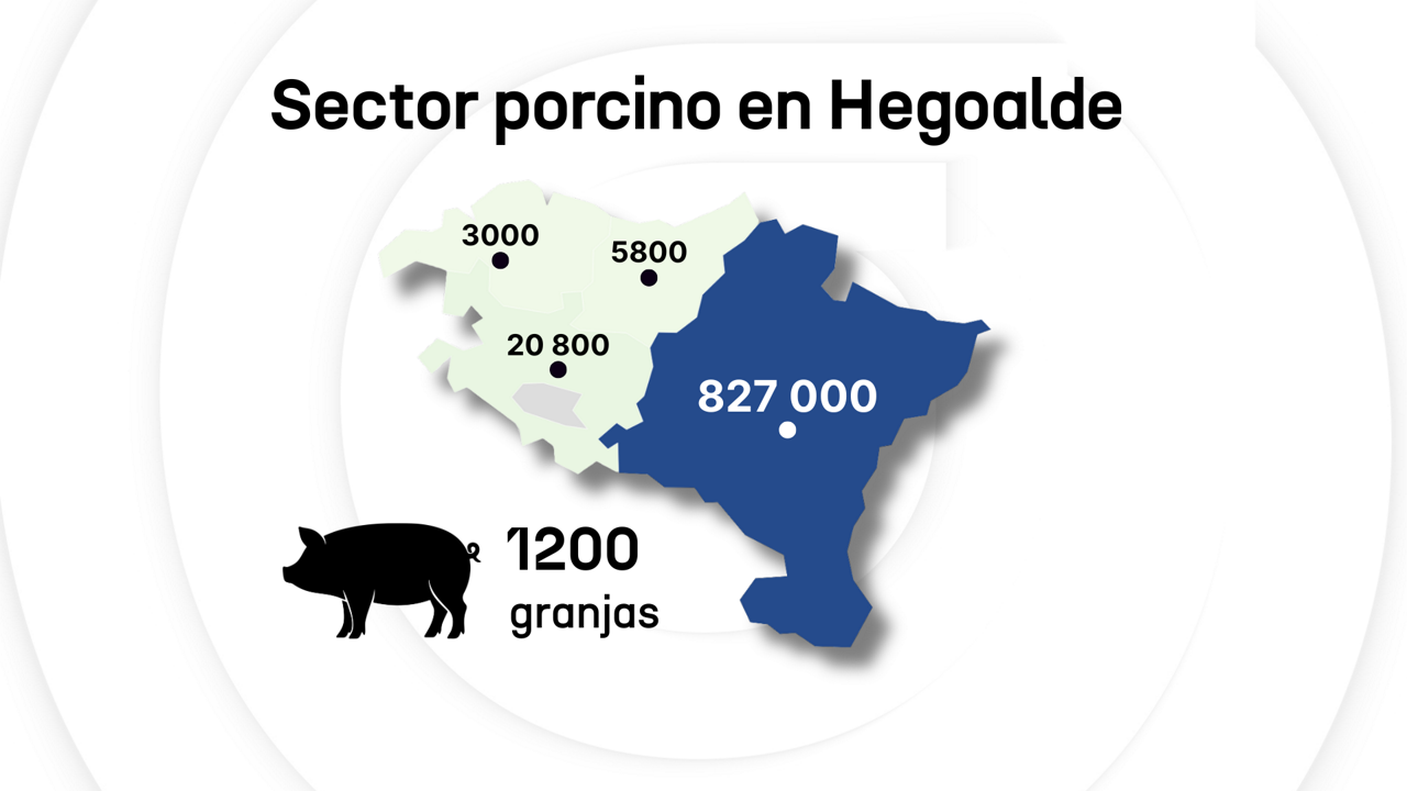 En total hay 1200 granjas de cerdos en Hegoalde, la gran mayoría en Navarra, con más de 800 000 cerdos.