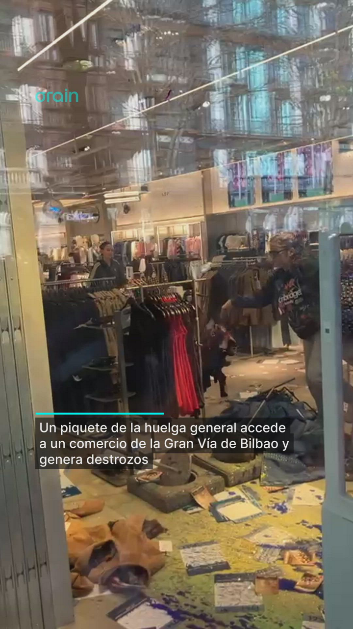 Los piquetes causan destrozos en una tienda de la Gran Vía de Bilbao