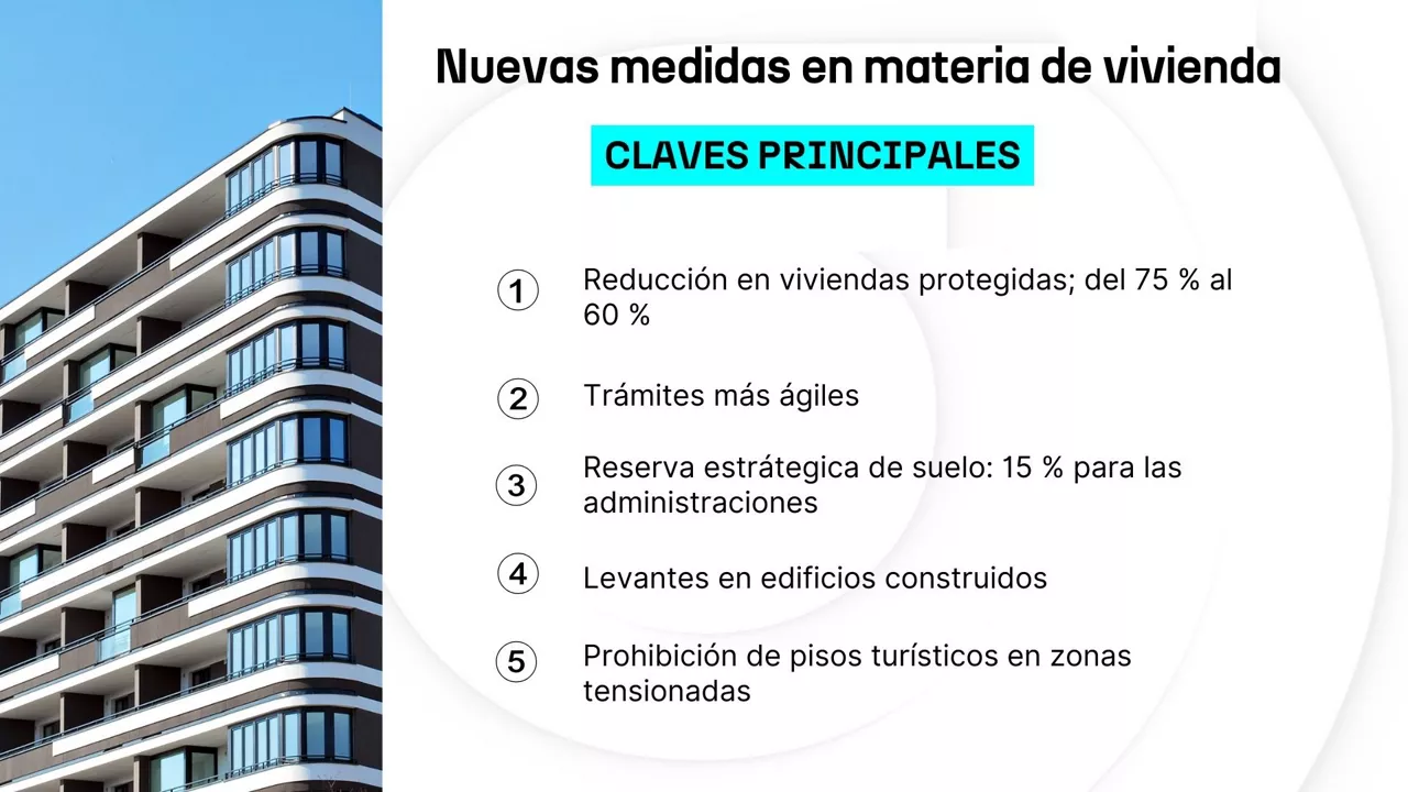 La proposición de ley impulsada por los socios de la coalición de gobierno impide nuevos pisos turísticos en zonas tensionadas y permite rebajar el porcentaje de VPO que se deberá incluir en cada nueva promoción privada de viviendas del 75 % al 60 %. EH Bildu, PP, Sumar y Vox han votado en contra y todas sus enmiendas parciales han sido rechazadas.