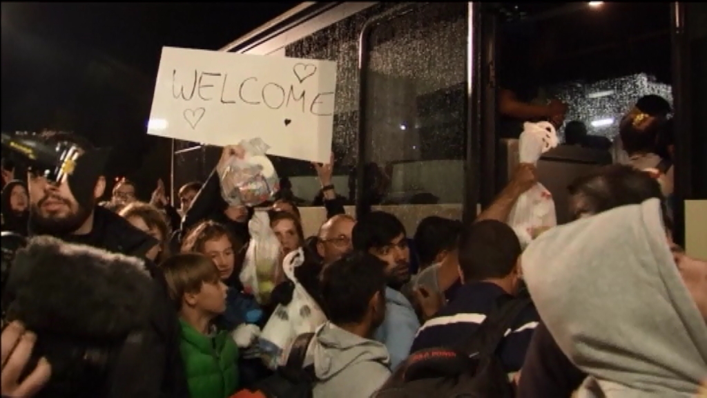 En Alemania, los primeros trenes especiales llegaron a Múnich, donde los refugiados fueron recibidos por las autoridades locales y por muchos ciudadanos con letreros de bienvenida.