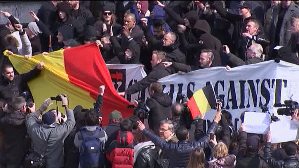 Extremistas irrumpen en un acto contra los atentados de Bruselas