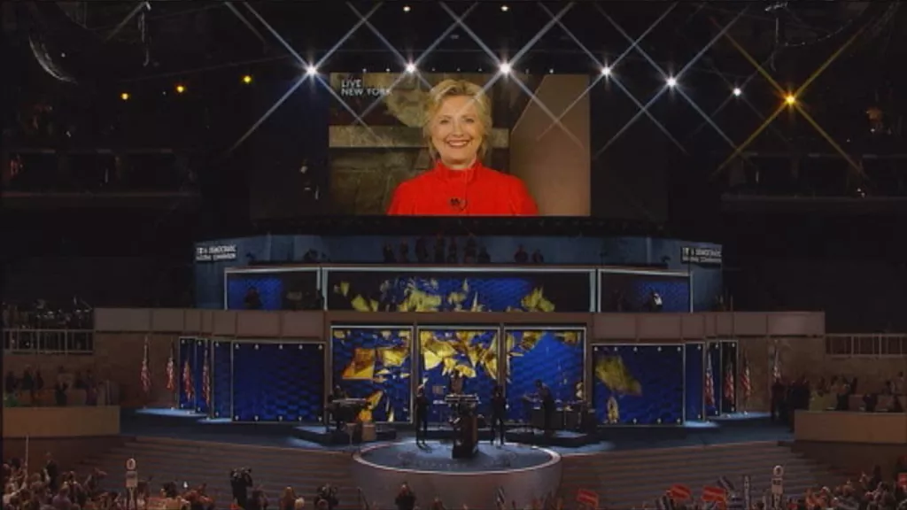 "Es un honor increíble que me hayáis elegido", ha asegurado la exsecretaria de Estado, desde una pantalla en la que se ha podido ver un enorme cristal rompiéndose en mil pedazos después de un pase de imágenes de varios expresidentes de Estados Unidos.