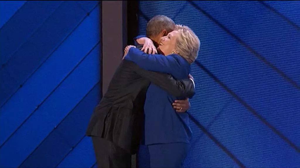 Al final del discurso de Obama, Clinton ha aparecido por sorpresa en el escenario y ambos se han fundido en un abrazo, ante los fervientes aplausos del público.