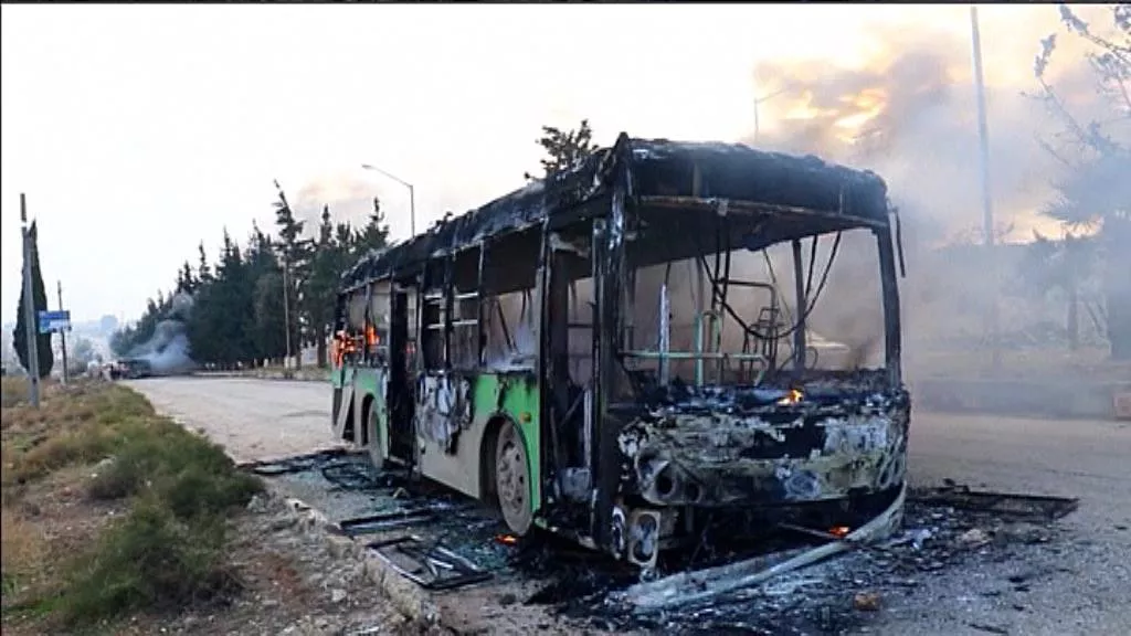 La evacuación de los civiles y milicianos de los barrios rebeldes del este de Alepo se interrumpió el domingo hasta nuevo aviso después de la quema de autobuses que iban a retirar civiles de dos localidades chiíes, según el director del Observatorio Sirio de Derechos Humanos, Rami Abderrahmán.