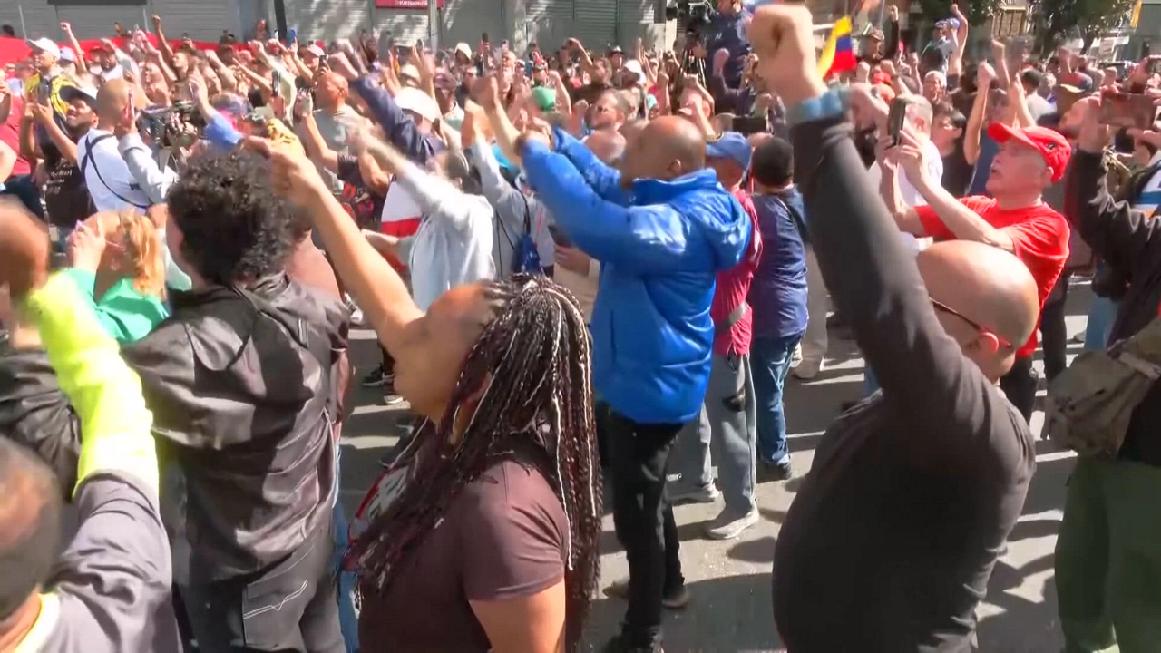 Son imágenes de Caracas, donde cientos de venezolanos han salido a la calle para exigir que Nicolás Maduro sea puesto en libertad y que regrese a Venezuela. La concentración más multitudinaria se ha celebrado junto al Palacio de Miraflores, sede del Gobierno venezolano.