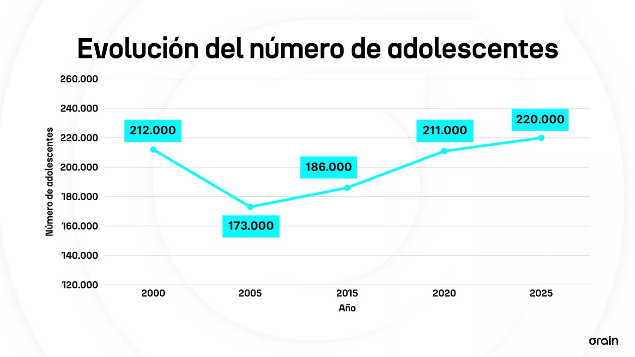 En la Comunidad Autónoma Vasca hay 220.000 jóvenes de entre 10 y 19 años, la cifra más alta desde 1999. En Nafarroa, mientras, no había tantos adolescentes desde comienzos de los 90. Hego Euskal Herria ronda los 300.000 adolescentes.