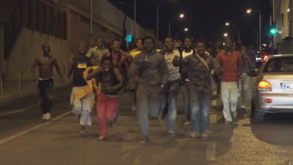 Cánticos, abrazos y gritos de júbilo han sido los protagonistas a las puertas del CETI, un centro absolutamente colapsado que, hasta hoy, antes de la entrada masiva, albergaba a unas 1.900 personas.