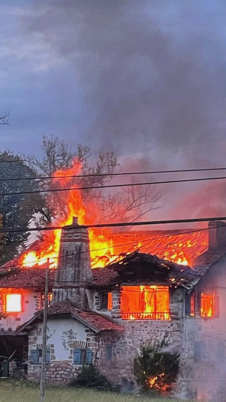 Un espectacular incendio calcina un caserío de Zumaia