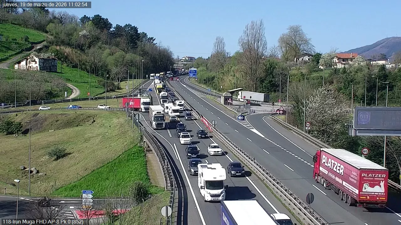 Tráfico complicado en la A-8: colas en Biriatu y retenciones desde Cantabria hacia la Margen Izquierda