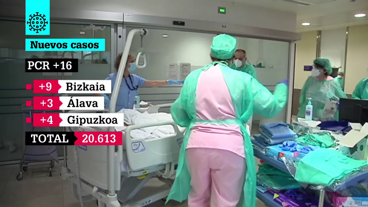 La pandemia de coronavirus no ha provocando ningún fallecimiento en las últimas horas en la Comunidad Autónoma Vasca, con lo que el total de fallecidos es de 1 603. Además, en las últimas 24 horas se han confirmado 16 nuevos positivos mediante pruebas PCR y 49 por test rápidos, según los datos ofrecidos este sábado por Nekane Murga, consejera del Departamento de Salud del Gobierno Vasco: 3 en Álava (2 en Vitoria-Gasteiz y 1 en Urkabustaiz), 9 en Bizkaia (8 en Bilbao y 1 en Barakaldo) y 4 en Gipuzkoa (3 en Orio y 1 en Bergara).