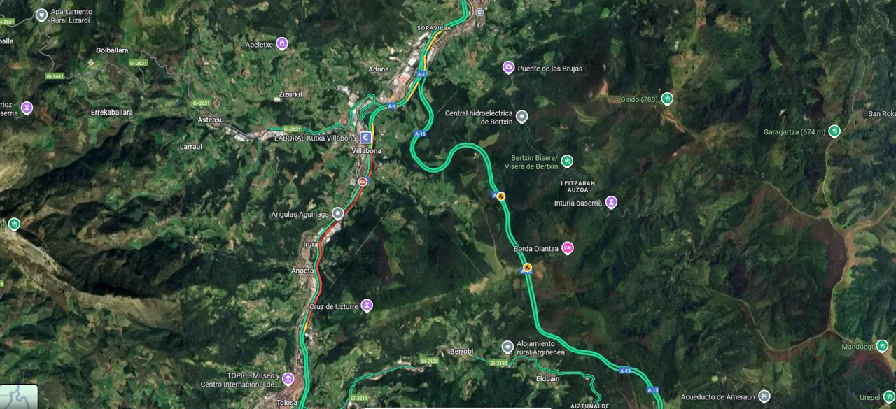 Un accidente en la N-1 entre Aduna y Anoeta genera retenciones de varios kilómetros