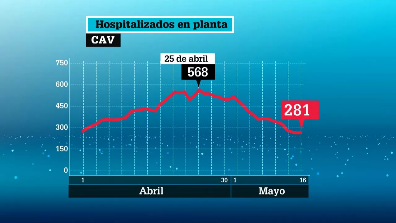 Euskadi ha registrado este pasado domingo 276 nuevos casos de covid-19, lo que supone cinco menos que el día anterior, y mantiene la evolución descendente de la tasa de incidencia acumulada, que se sitúa en 306,13 casos por cada 100 000 habitantes. La presión hospitalaria se mantiene con 281 personas en planta y 146 en las UCIs.