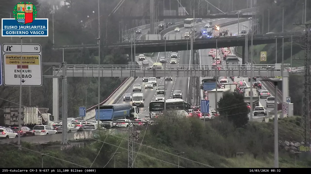El accidente ha obligado a cortar tres de los cuatro carriles de la vía en plena hora punta y está afectando a ambos lados de la ría; las retenciones afectan a La Avanzada, Rontegi, Barakaldo y Cruces. Además otro accidente cerca de San Mames provoca retenciones en la A8 sentido Cantabria.
