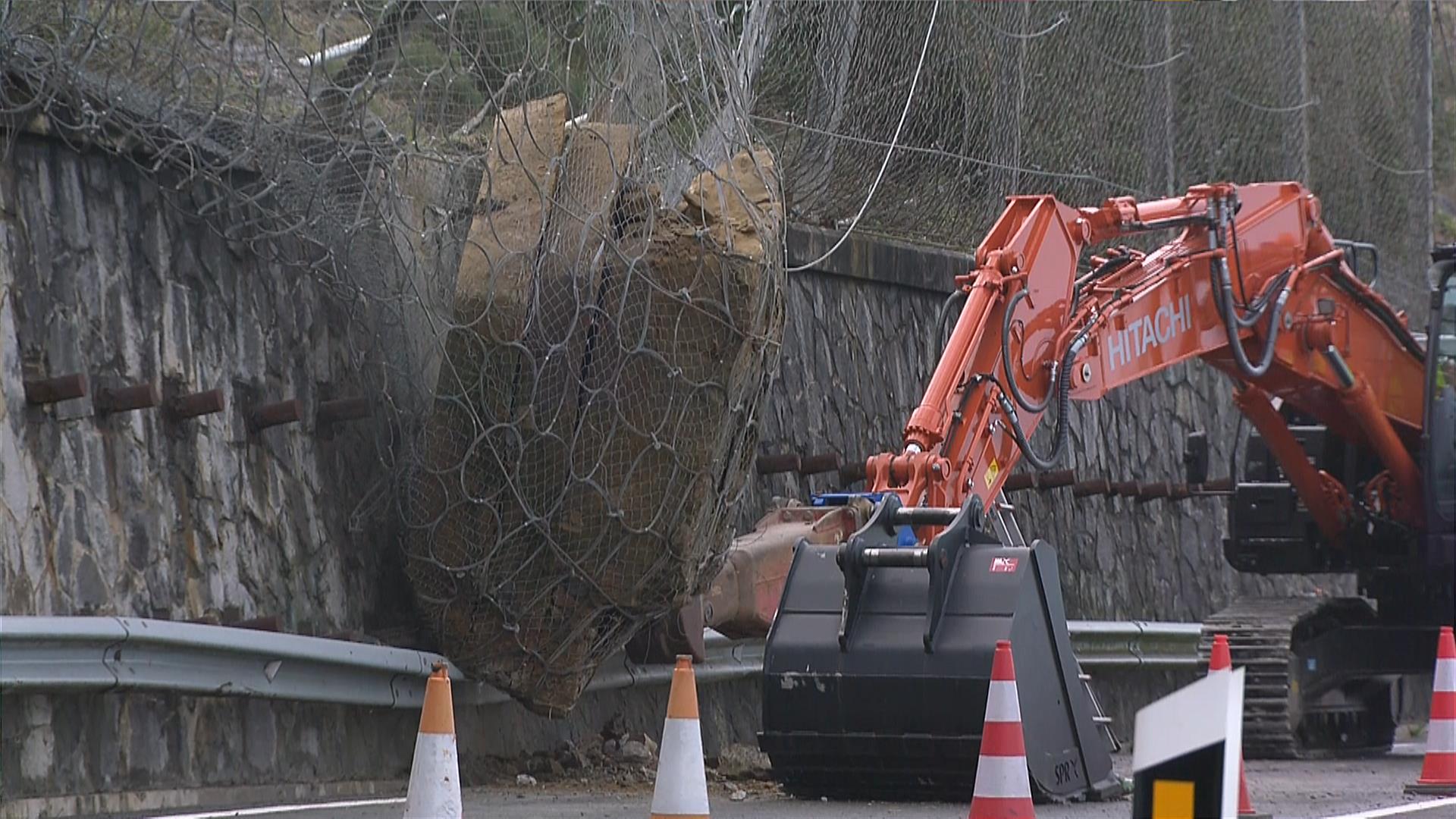 La carretera N-634 entre las localidades guipuzcoanas de Zarautz y Getaria se ha reabierto pasadas las 18:15 horas de este martes tras retirar el desprendimiento de la roca de grandes dimensiones que había caído a una red de seguridad por las fuertes lluvias del temporal.