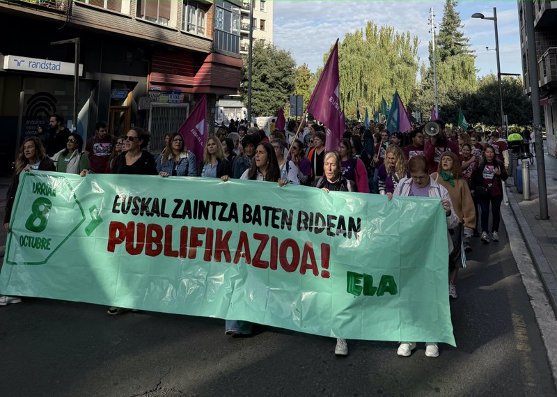 La movilización ha partido de la plaza Bilbao de Vitoria-Gasteiz bajo el lema "En el camino de un modelo vasco de cuidados de calidad, ¡publificación ya!".