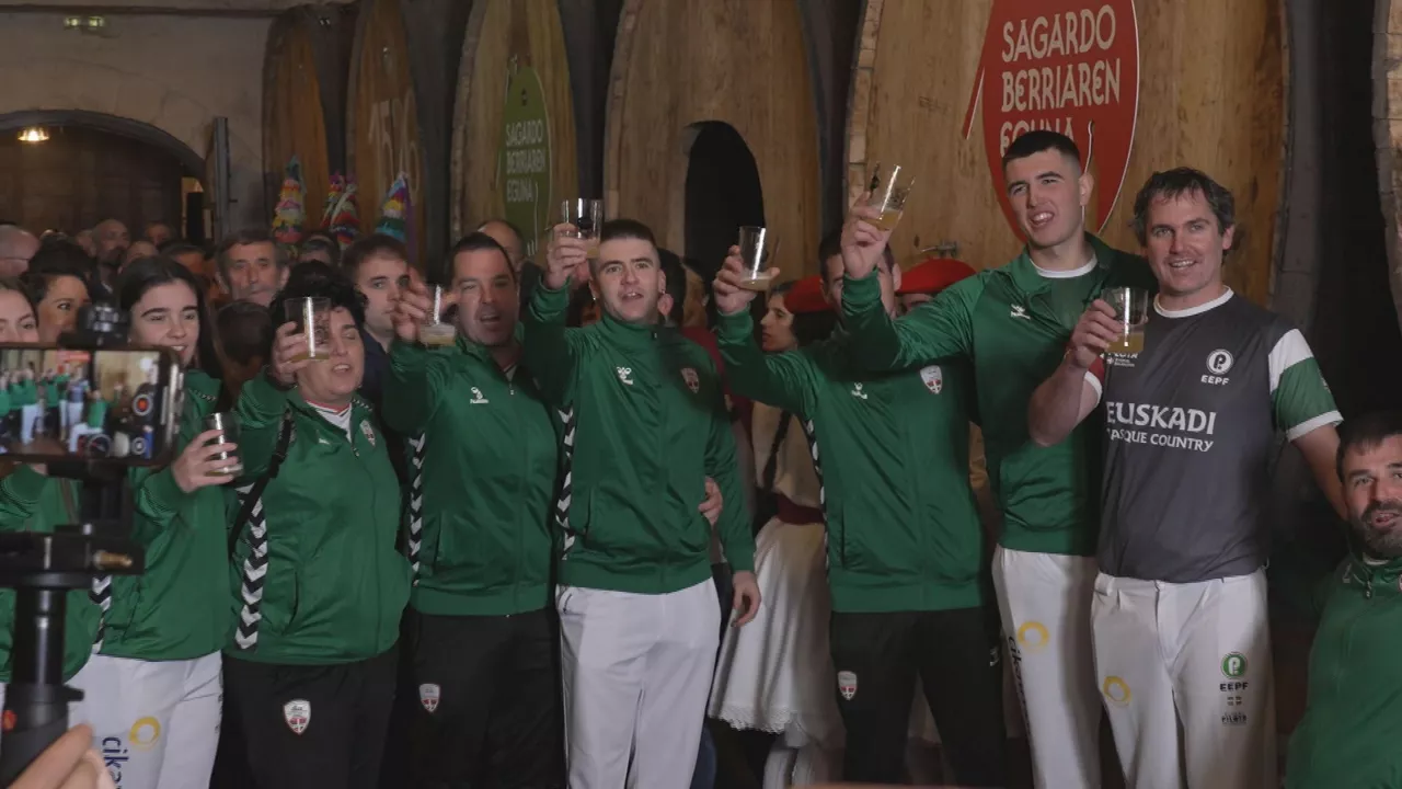 Este año la selección vasca de pelota ha abierto el primer barril de sidra en la sidrería Petritegi de Astigarraga. En total se han producido 10 millones de litros de sidra, de los cuales 3,1 millones son Euskal Sagardoa, elaborada con manzana autóctona. Celebran la buena cosecha.