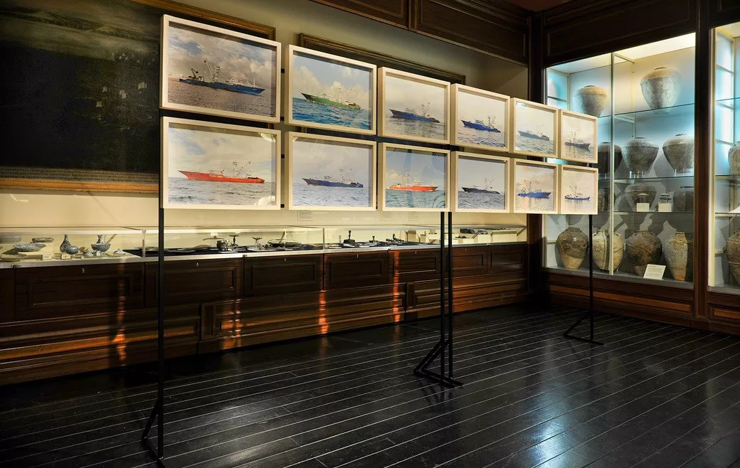 Mikel Eskauriza ha explorado la flota de atuneros vascos que opera en mares internacionales para este ambicioso proyecto fotográfico. El artista ha hecho un análisis de las embarcaciones evocando las tipologías de los pintores de marinas (pinturas en la que el mar comprende dos tercios de la superficie pintada y con la embarcación vista desde una rigurosa perspectiva lateral). Eskauriza utiliza la pintura y la literatura, en contraposición con lenguajes de nuestro tiempo, como vehículo de expresión. El resultado es una revisión del género desde un contexto contemporáneo, haciendo alusión al escenario comercial y geopolítico de la actualidad.