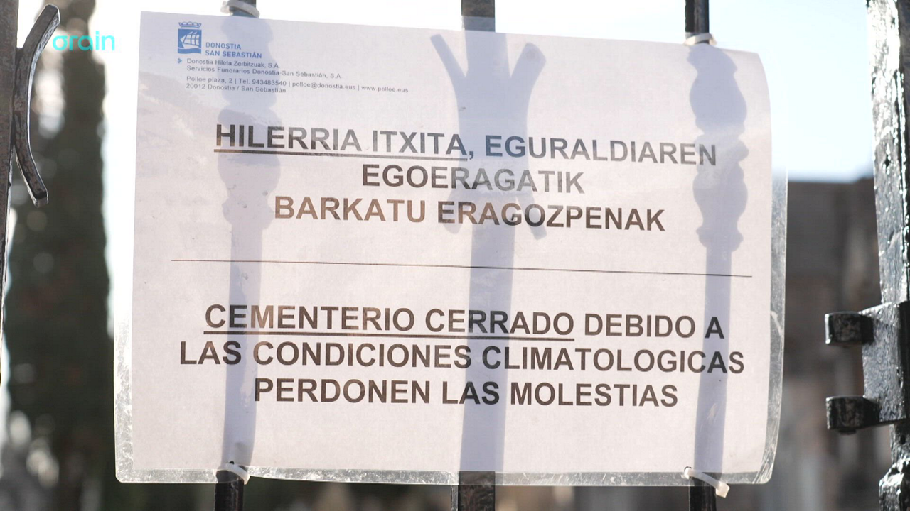 Debido a la alerta naranja, la capital guipuzcoana ha cerrado sus parques y el cementerio municipal de Polloe por la alerta naranja por fuerte viento. En concreto, el acceso ha estado prohibido en el Parque de Aiete, excepto la Casa de Cultura, el Parque Cristina Enea, Miramar, Urgull, Serafin Baroja, el Parque de la Memoria, además de Polloe.