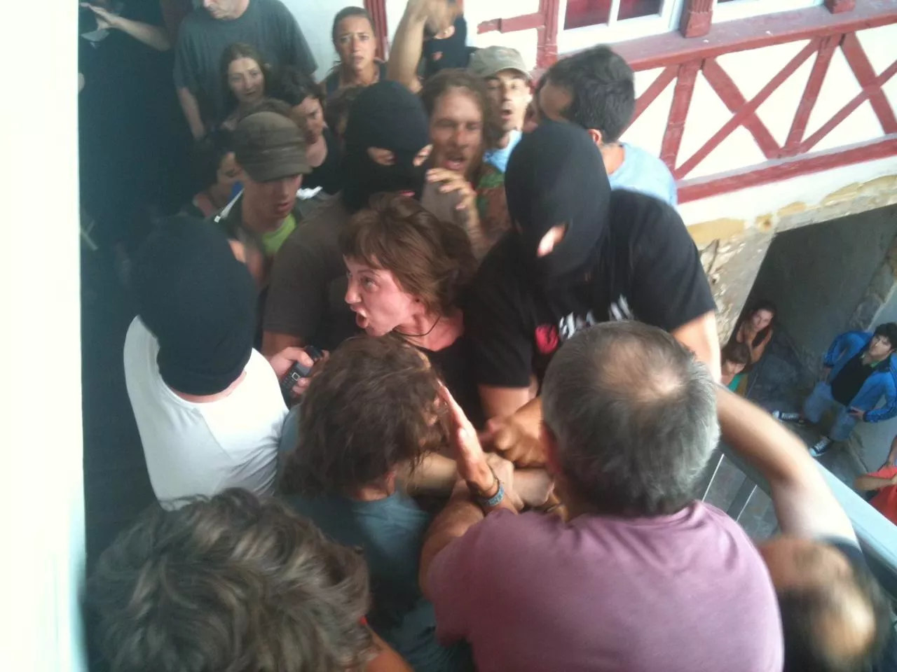 Una vez en la planta baja de la casa, se ha producido un altercado "bastante violento" entre la Policía francesa y las personas que han acudido a ayudar a Aurore Martín. Entonces, los agentes han decidido "soltarla para poder ir a buscar refuerzos", ha añadido Martín. La militante de Batasuna tiene un "rasguño" en el brazo, pero no ha habido ningún herido.