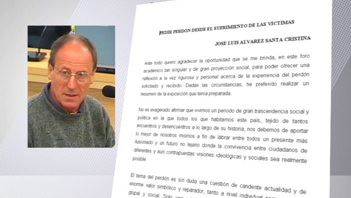 El exdirigente de ETA José Luis Álvarez Santacristina, Txelis, ha pedido públicamente perdón a las víctimas del terrorismo "de todo corazón y con toda hondura de reflexión autocrítica", y ha advertido de que si el perdón se plantea "sólo como un requisito de cumplimiento formal, podría perder su potente fuerza reparadora y regeneradora".