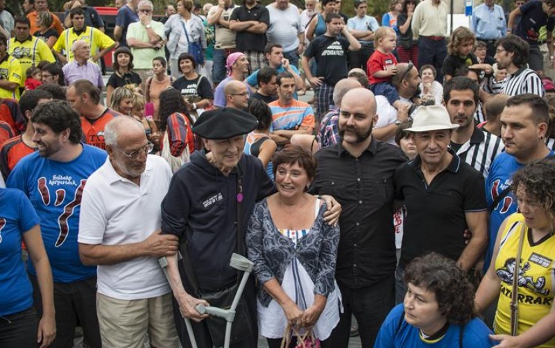 Las comparsas muestran su apoyo a la txupinera Jone Artola