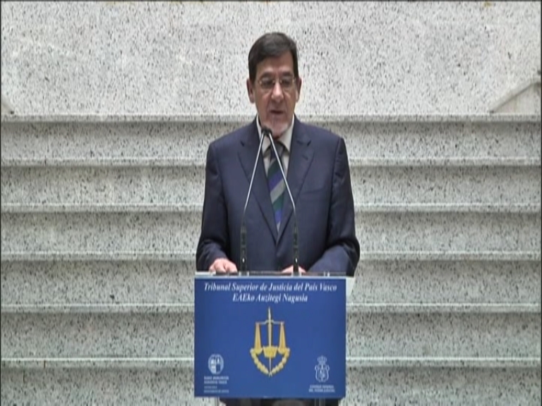Ante el "desaliente cívico" que se proyecta sobre la confianza en las instituciones, el presidente del TSJPV ha ofrecido la aportación de los jueces para que queden garantizados los valores de igualdad y solidaridad.