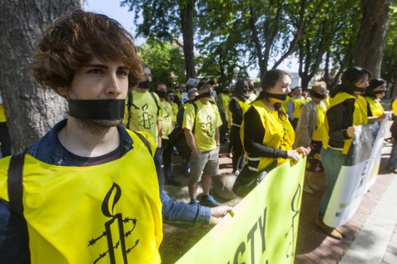 Amnistía Internacional se amordaza en contra de la falta de libertad