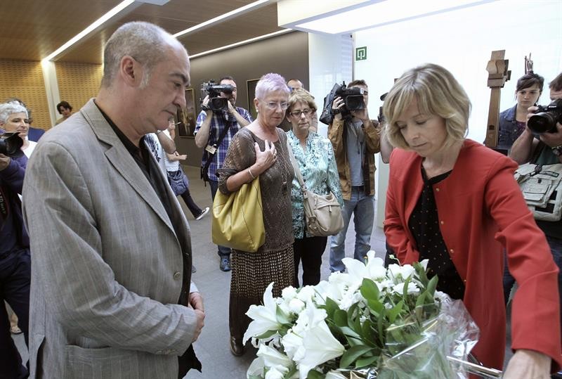 A la cabeza de la comitiva se encontraba, el propio diputado general, Martín Garitano, pero todos han arropado a la familia de Jáuregui, entre las que se encontraban su viuda, Maixabel Lasa, y su hermana, Joxepi.