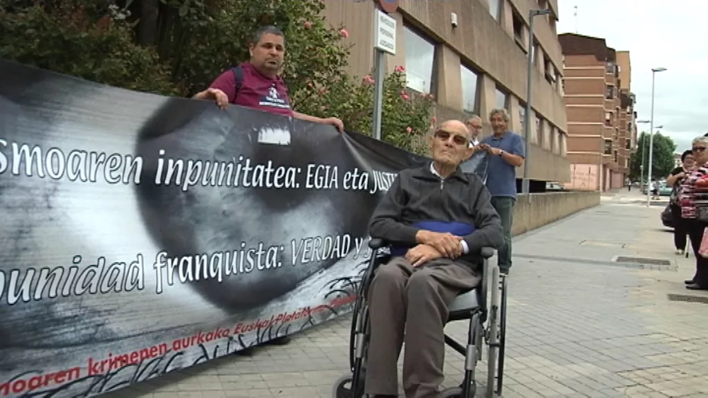 El veterano, arropado por la Plataforma Vasca Contra los Crímenes del Franquismo, también ha relatado su experiencia en los "batallones de trabajadores", donde los prisioneros que eran utilizados como esclavos en el franquismo.