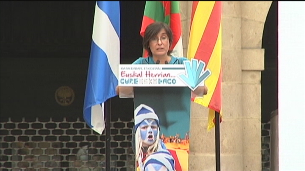 "En Europa hay un tren en marcha. Una de sus manifestaciones fue la Diada donde los catalanes solicitaban votar y el próximo jueves va a haber otro pueblo que quiere ser libre en Europa, que va a votar y hacer ese ejercicio", ha indicado en referencia a Escocia la portavoz de la plataforma, Zelai Nikolas.