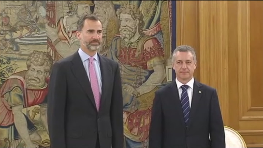 Urkullu acudió por primera vez a la Zarzuela como lehendakari el 21 de enero de 2013, cuando el Rey Juan Carlos le recibió tras las elecciones autonómicas de octubre de 2012 que dieron la victoria al PNV, y esta tarde se ha convertido en el segundo presidente autonómico convocado por Felipe VI.
