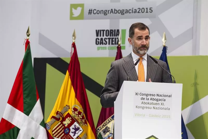 El Monarca ha lanzado este mensaje en la inauguración del 'XI Congreso Nacional de la Abogacía', que se celebra en Vitoria-Gasteiz, en un acto que también ha contado con la presencia del presidente del Consejo General de la Abogacía Española, Carlos Carnicer; el ministro de Justicia español, Rafael Catalá; y el lehendakari, Iñigo Urkullu, entre otros.
