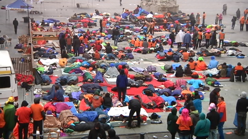 Seiscientas personas pasan la noche en la plaza de la Virgen Blan