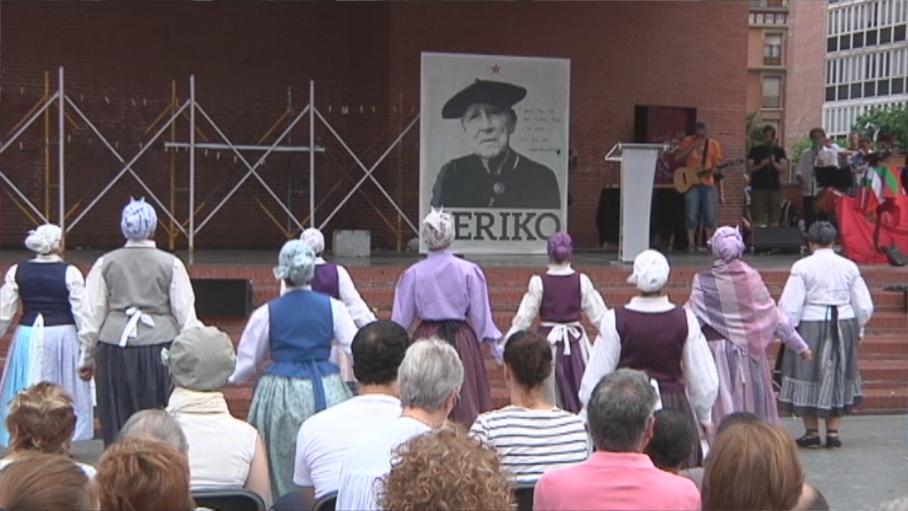 El homenaje ha arrancado con un pasillo de ikurriñas bajo el que los participantes han portado la urna con sus restos mortales y ha contado también con la actuación de bertsolaris y dantzaris.
