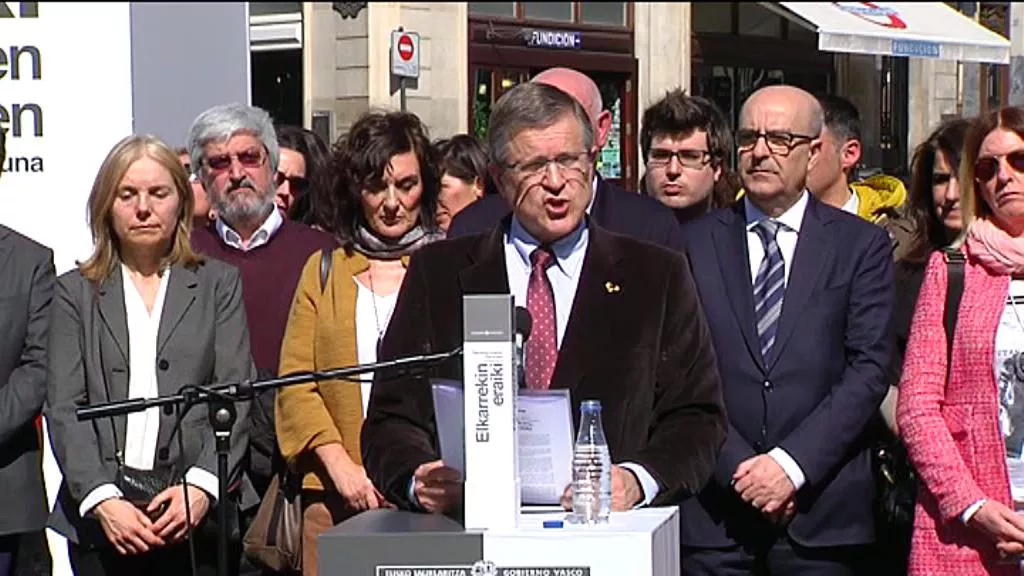 El homenaje ha comenzado a las 09:00 horas con la concentración durante 15 minutos del lehendakari, Iñigo Urkullu, y los consejeros de su Gobierno. A partir de ese momento, entre las distintas representaciones se han pasado el testigo con un mensaje en su interior.