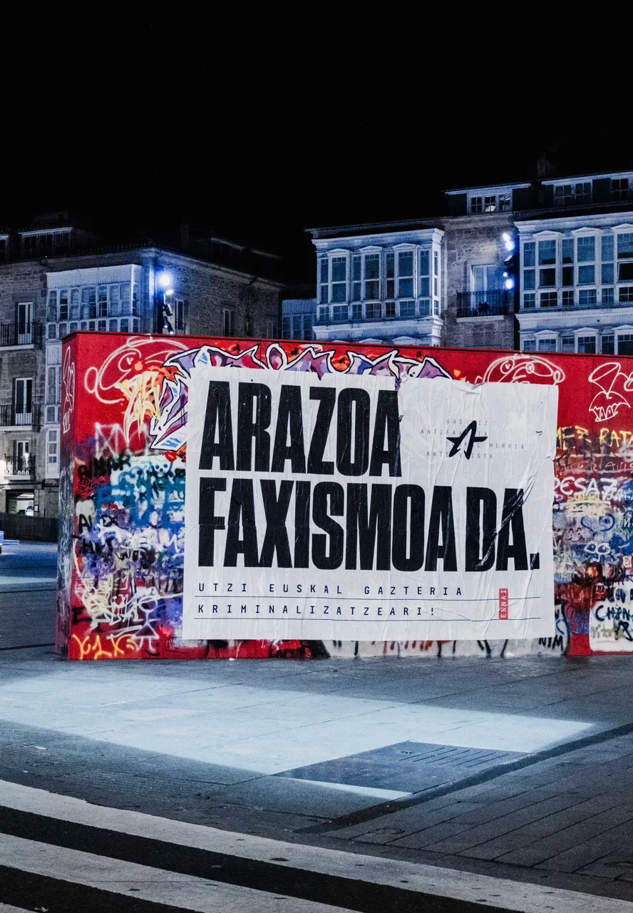 La organización juvenil ha desplegado un cartel en el muro de la plaza de la Virgen Blanca y ha acusado a “partidos y medios” de impulsar una campaña para “blanquear a los fascistas” y “criminalizar el antifascismo”.