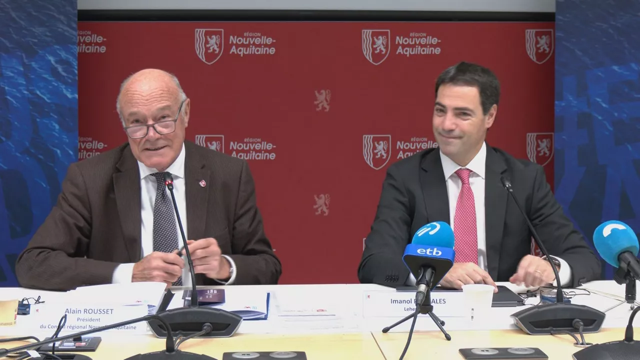 El lehendakari ha cerrado hoy un viaje de dos días a la región francesa de Nouvelle-Aquitaine con una rueda de prensa en Burdeos junto al presidente de esta región francesa, Alain Rousset, después de que ambos se reunieran el lunes con el responsable del ramo de transportes de la Comisión Europea.