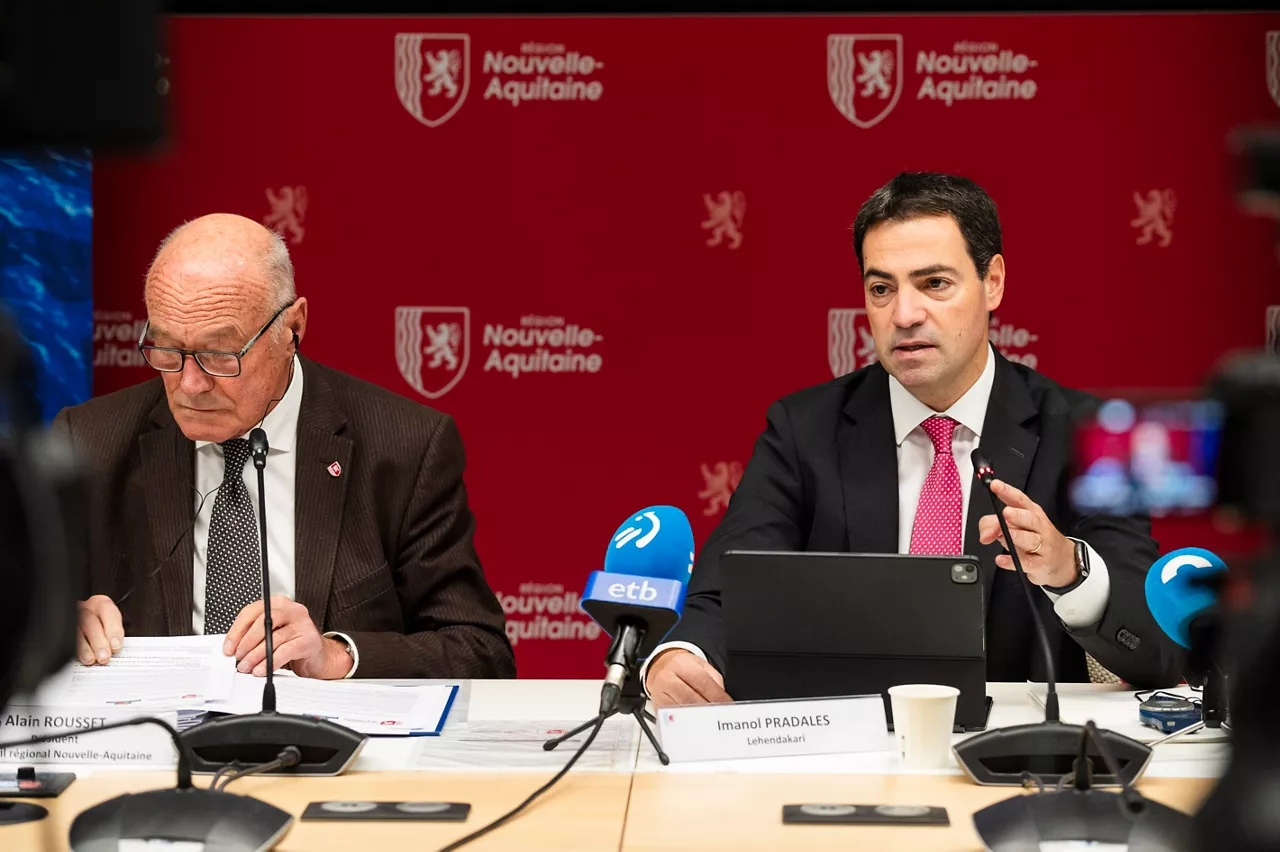 El lehendakari ha cerrado hoy un viaje de dos días a la región francesa de Nouvelle-Aquitaine con una rueda de prensa en Burdeos junto al presidente de esta región francesa, Alain Rousset.