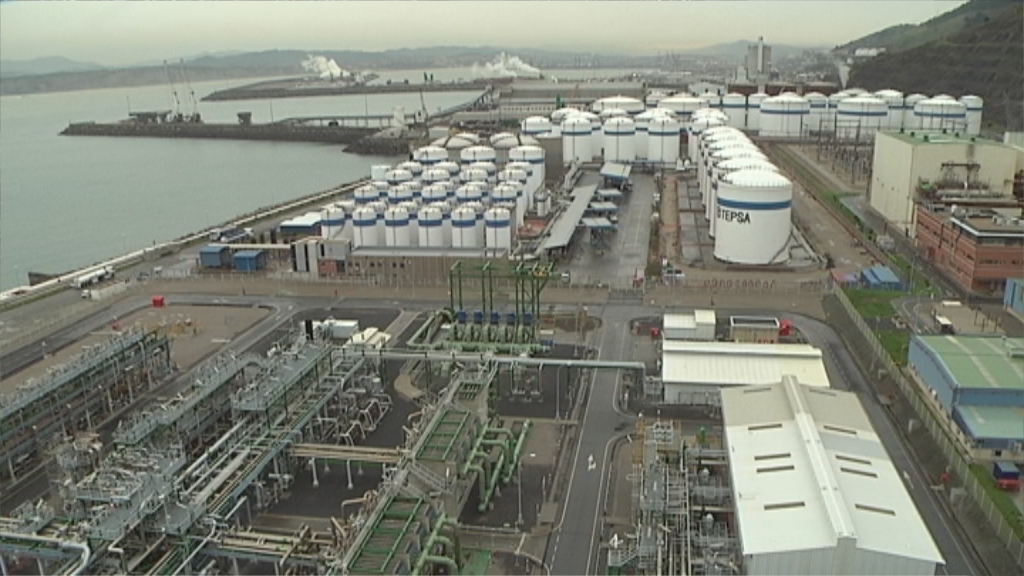 La planta regasificadora del puerto de Bilbao es una de las puertas de entrada de gas natural más importante del sur de Europa. En Zierbena se ha inaugurado el tercer tanque de almacenamiento de gas.