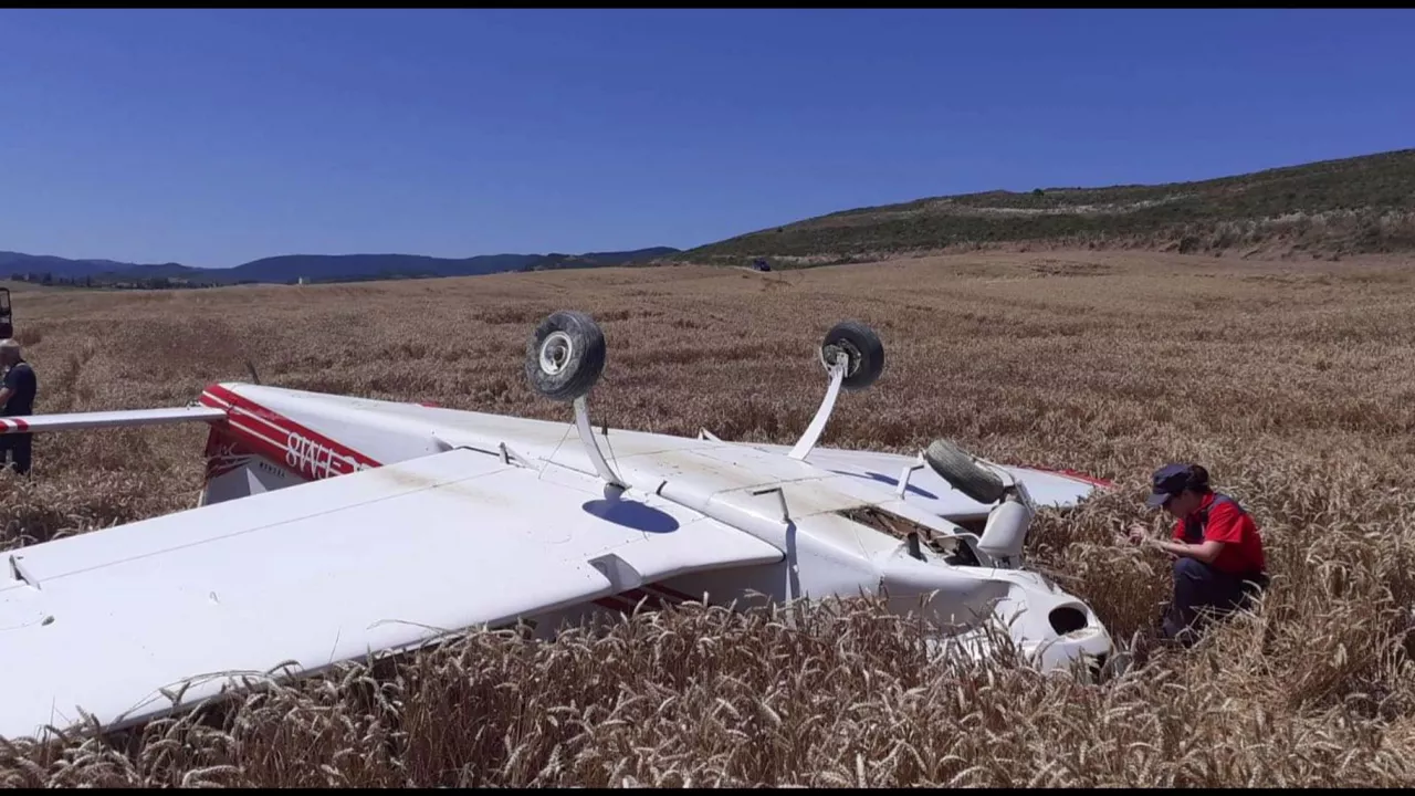Dos heridos en el aterrizaje de emergencia de una avioneta ligera en Navarra