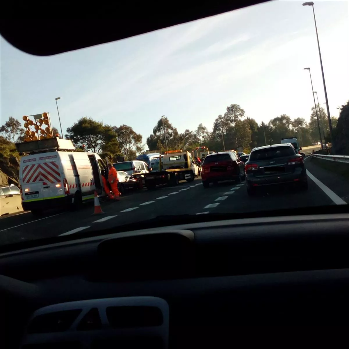 Un accidente múltiple deja tres heridos y largas retenciones en la A8 en Muskiz