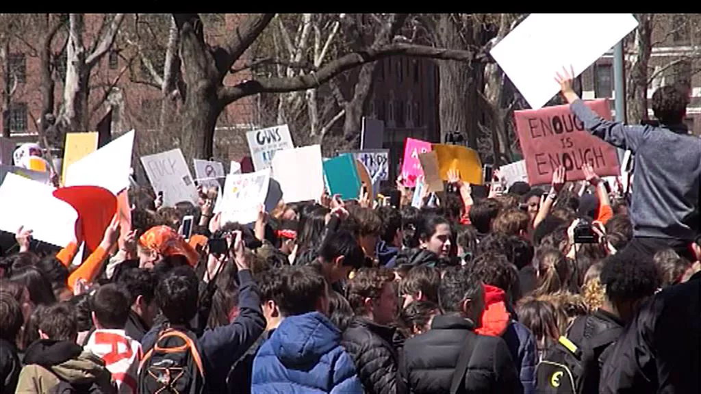 Los estudiantes han abandonado sus clases para exigir a las autoridades un mayor control en la venta de armas en conmemoración por el decimonoveno aniversario de la matanza en la escuela Columbine