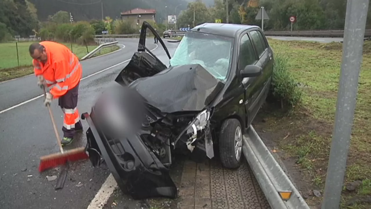 Rescatan a una persona atrapada en un choque frontal ocurrido en Arakaldo