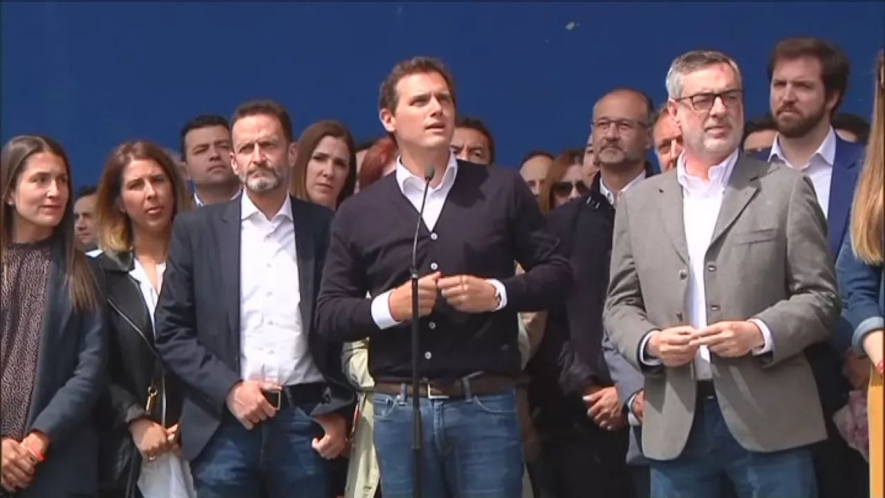 Rivera ha llegado entre aplausos de sus seguidores y gritos de 'fuera' de algunos vecinos. Al llegar al frontón donde Cs celebraba un acto electoral han hecho sonar una sirena a gran volumen.
