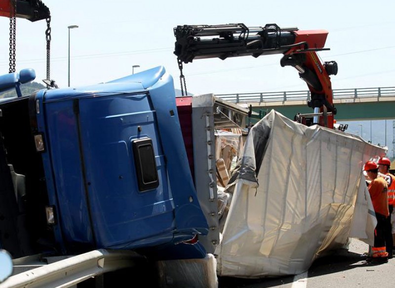 Fallece el conductor del camión volcado en la A-15, en Urnieta