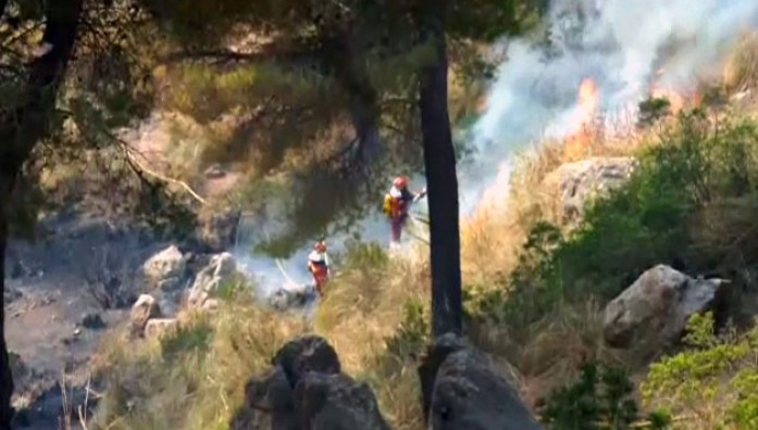 La fuerza del viento no está ayudando a la hora de poder controlar el incendio, que avanza por la Sierra de Tramuntana, enclave declarado Patrimonio de la Humanidad.